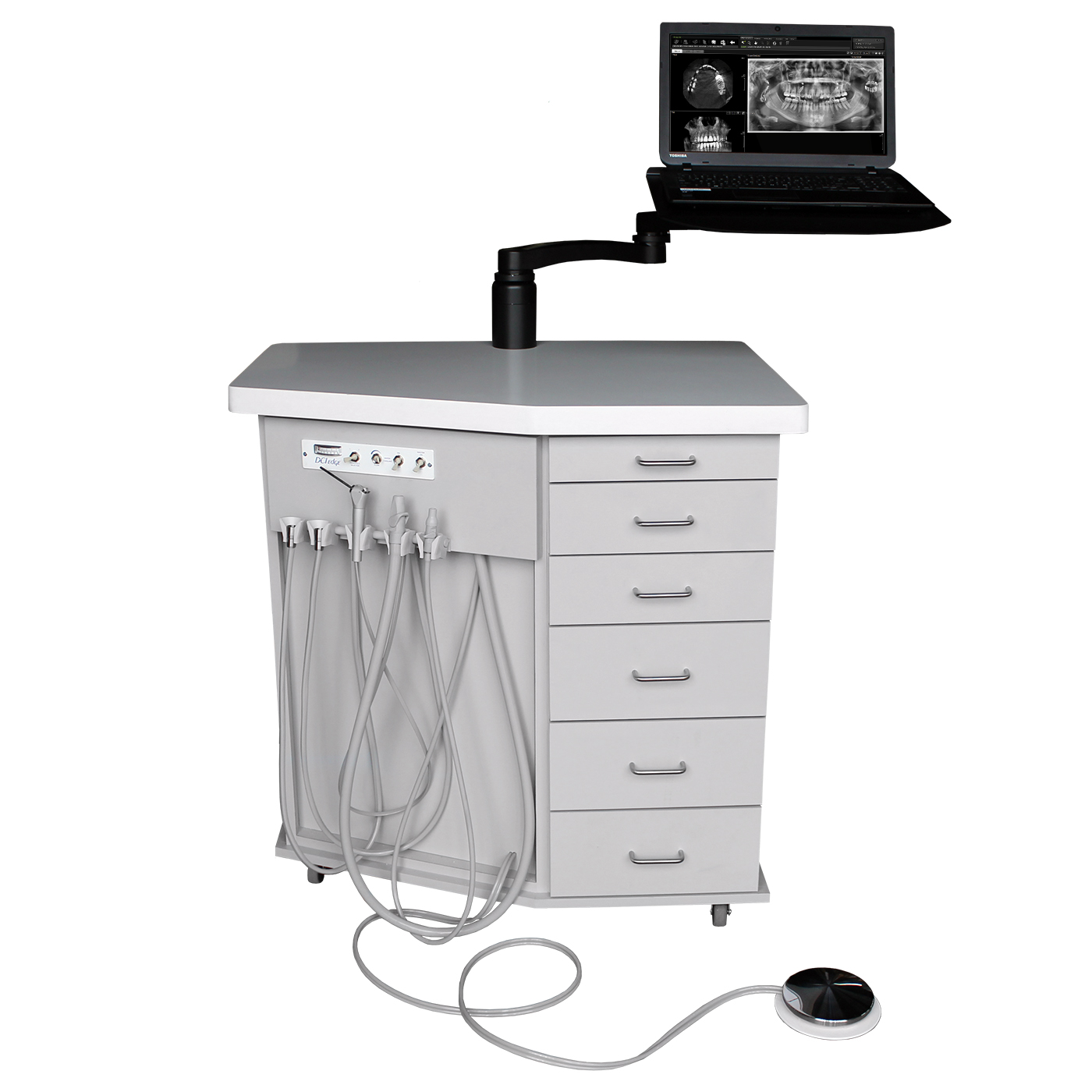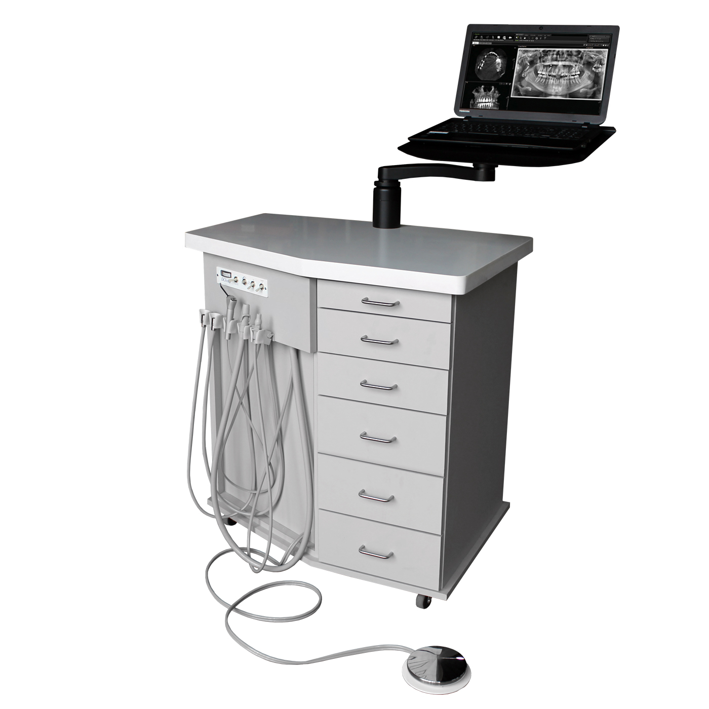 DESCRIPTION: Mobile treatment cabinet with multiple handpieces, instrumentation, and space to hold all the materials necessary for treating patients. Various aesthetic options are also available.